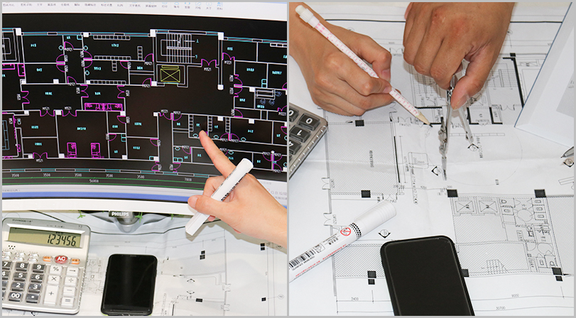每承接一個工程,公司都會派出經(jīng)驗豐富的技術(shù)團隊上門勘察、實地測量,提供工程設計方案。測量各個房間尺寸及造型情況,做好記錄,做到心中有數(shù)。